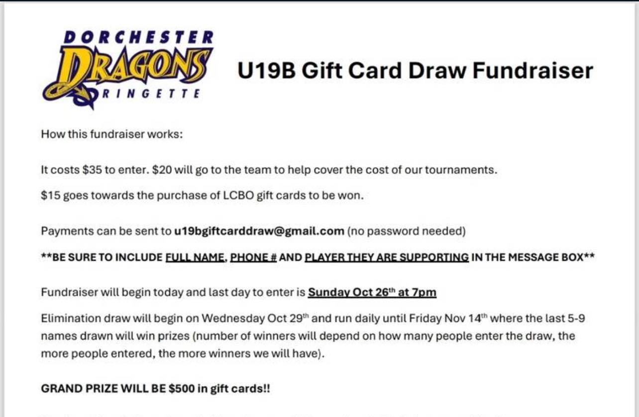 | U19B | Gift Card Draw | Friday November 14th | heather.ashmore@gmail.com |
